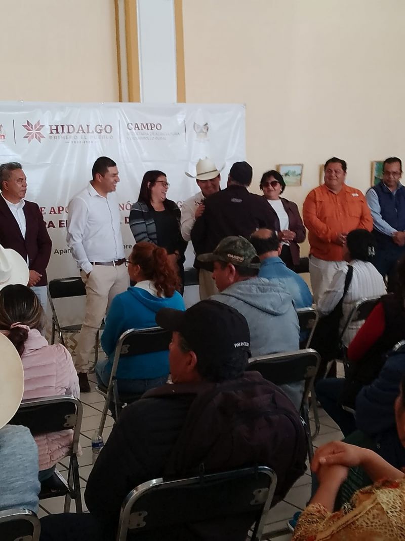 El día de hoy el Presidente Municipal, el Lic. Hector García Aguilera acudió al Municipio de Apan, en donde se reunión con el Secretario de Desarrollo Agropecuario de Hidalgo Napoléon González Pérez, así como la Presidenta de Almoloya Blanca Margarita Ramírez, en donde se llevó a cabo la entrega de apoyos económicos en favor de productoras y productores afectados en sus cultivos por los efectos del cambio climático. Reconociendo el esfuerzo y dedicación a favor del campo hidalguense.